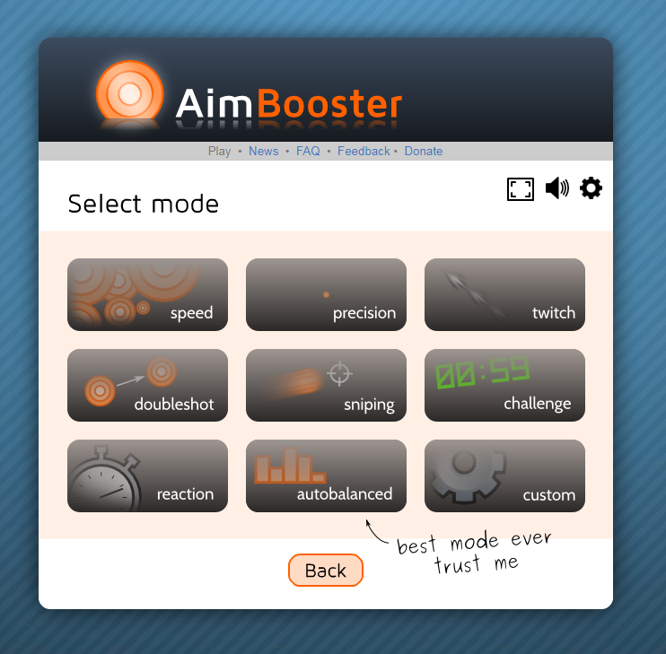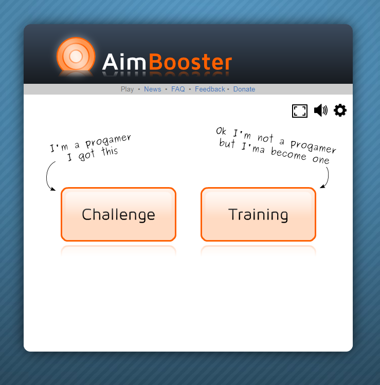 ▼ 에임연습사이트 에임부스터는 challenge모드와 Training모드가 있습니다. 저는 주로 challenge모드를 사용하는데, 다양한 연습모드와 난이도를 조절하시고 싶으신 분들은 Training모드로 연습해주시면 됩니다.
